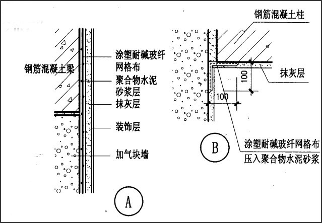 加氣混凝土砌塊設(shè)備網(wǎng)看圖來(lái)說(shuō)明不同材料交界處構(gòu)造和防裂處理方法